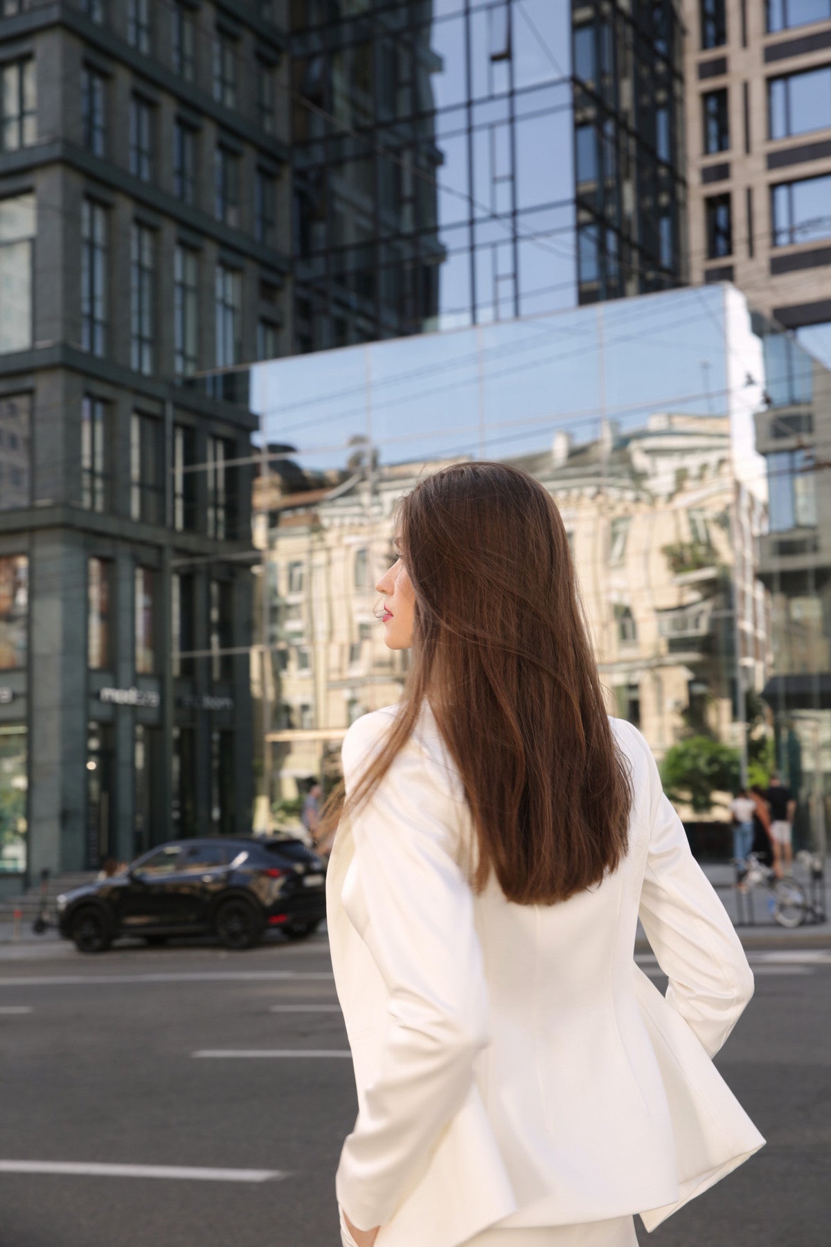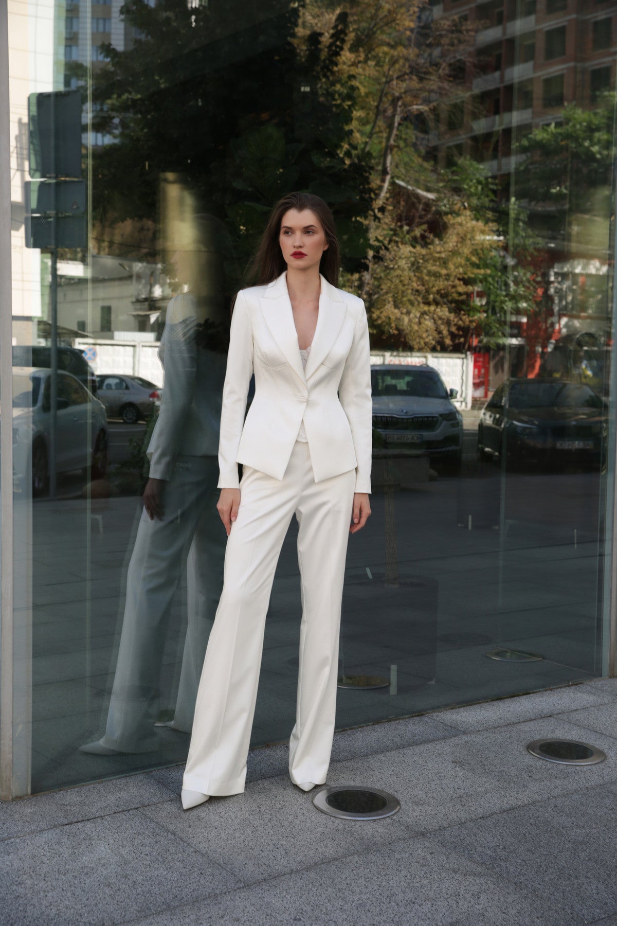 The perfectly cut bridal blazer Elif is an ideal accessory that can be paired with a dress, trousers, top, or corset for a tailored look. Made from champagne-colored stretch satin, this blazer will last you after the big day too!