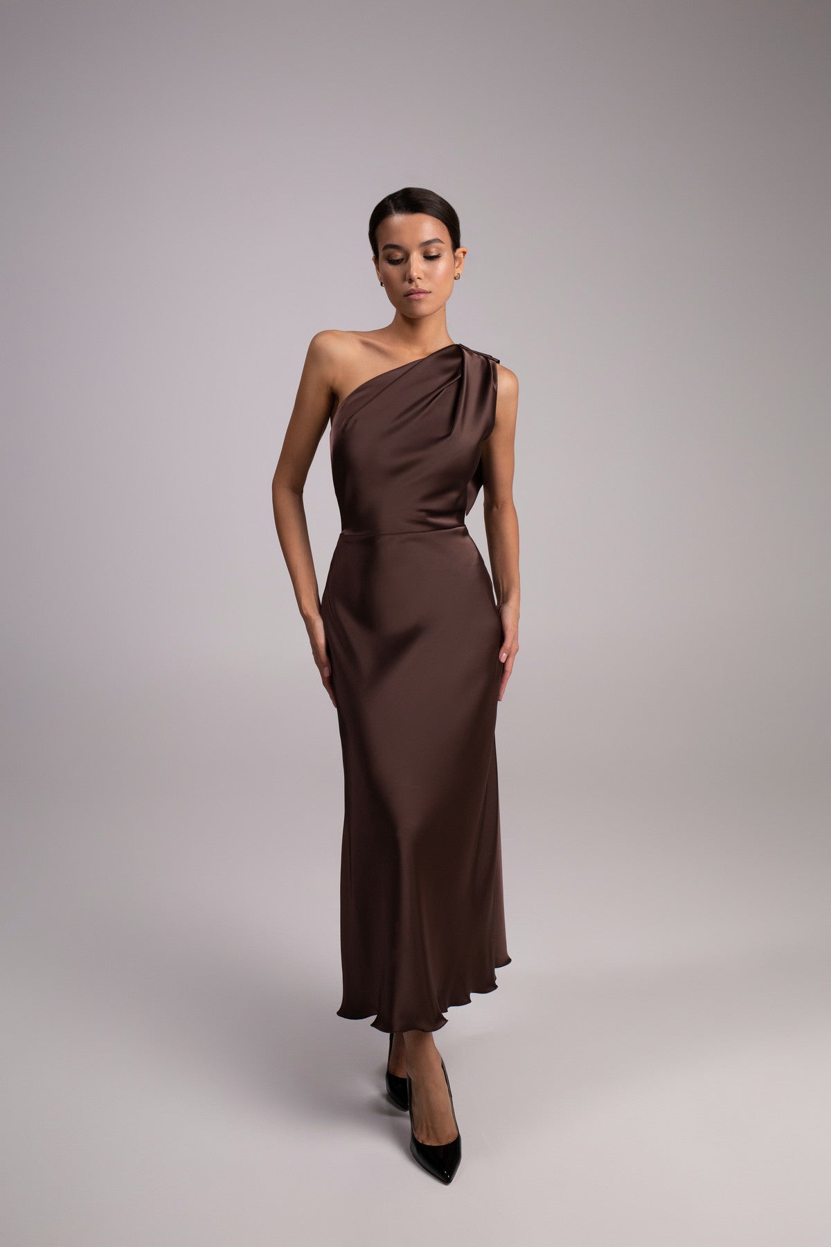 Satin One Shoulder Minimalist Evening Dress Julia midi