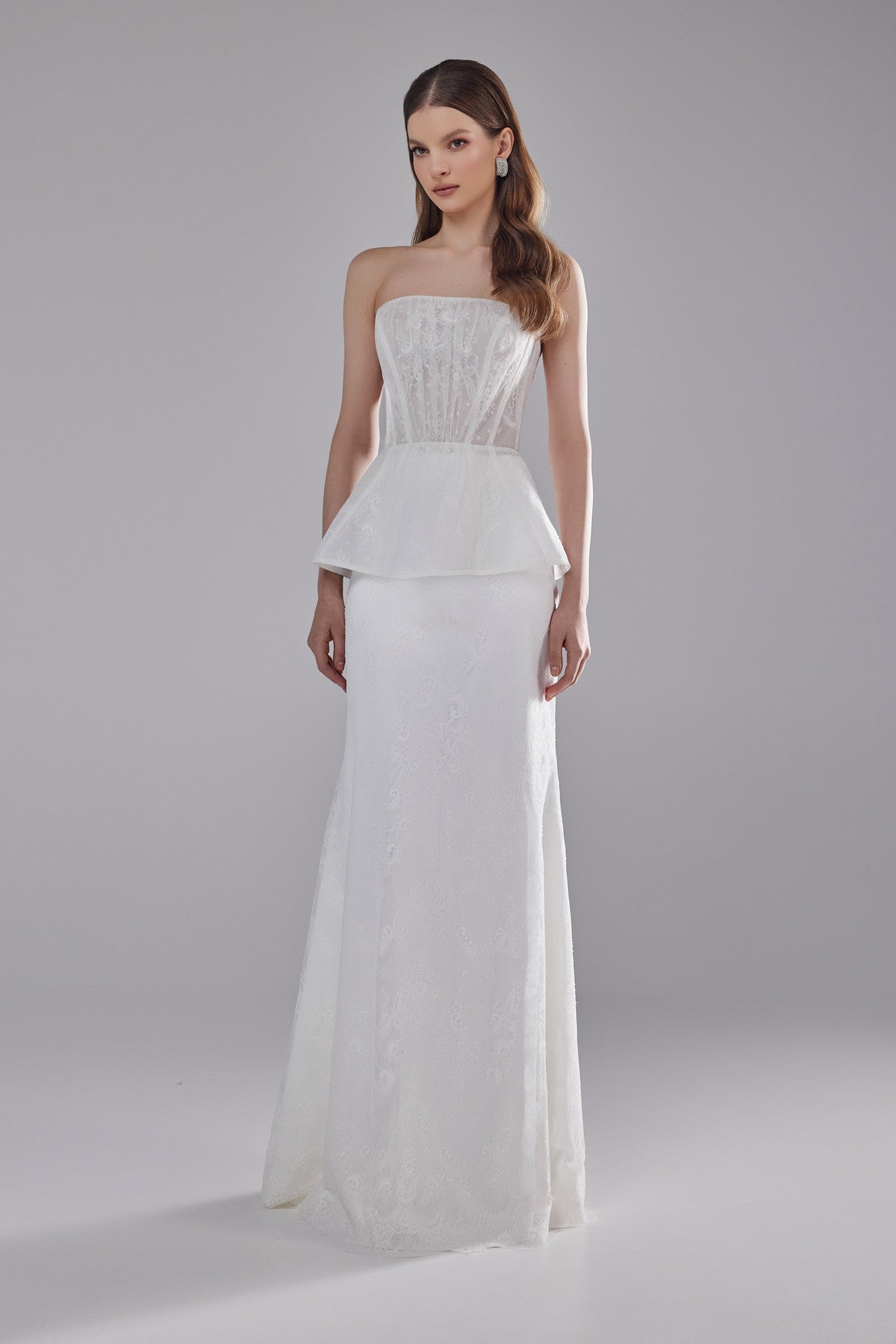 Strapless Lace Peplum Corset Wedding Dress Rosemary