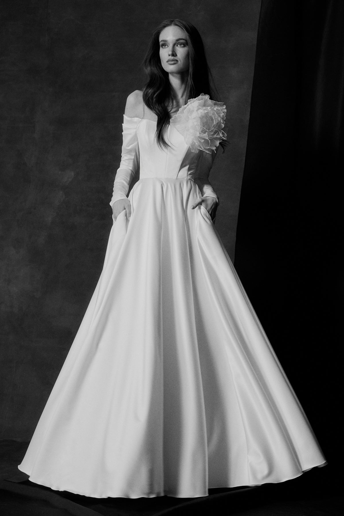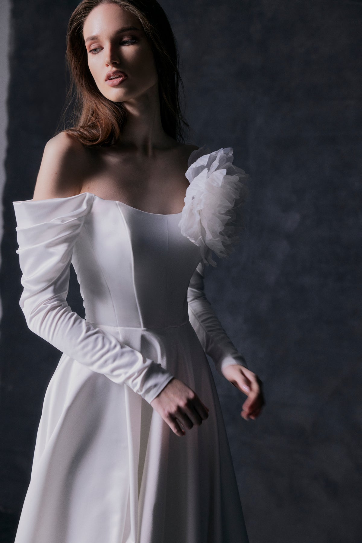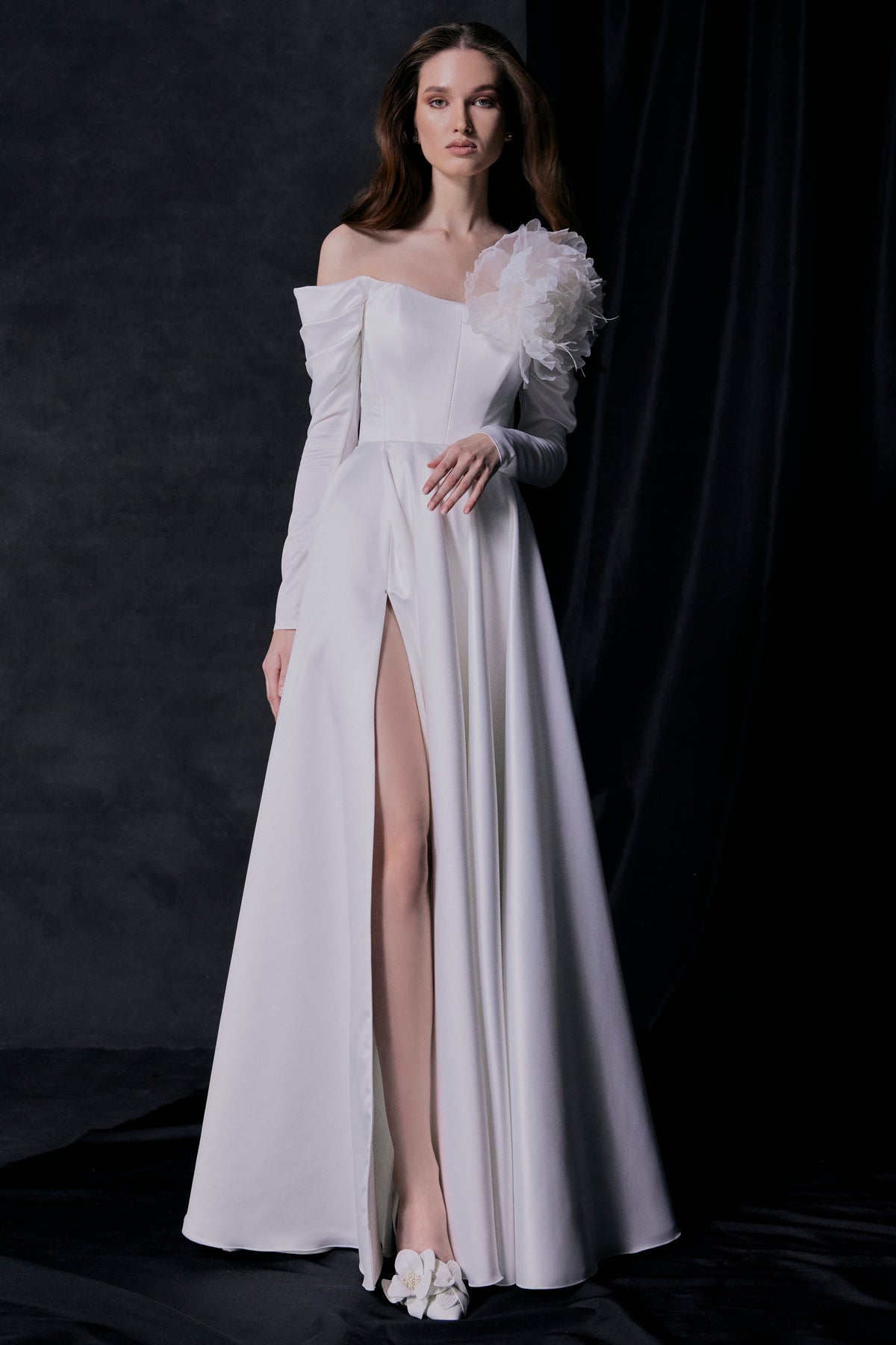 Satin Off-The-Shoulder A-line Wedding Dress Tiana-1