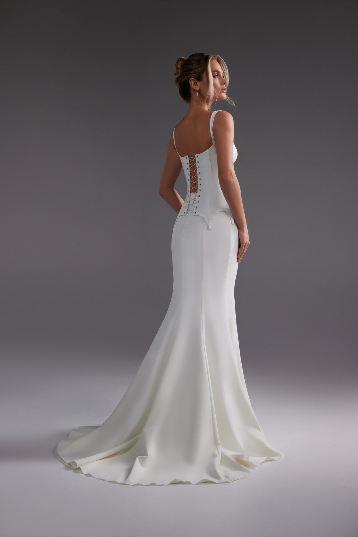 Two Piece Crepe Wedding Gown Allegra With Bustier Corset And Fit & Flare Skirt