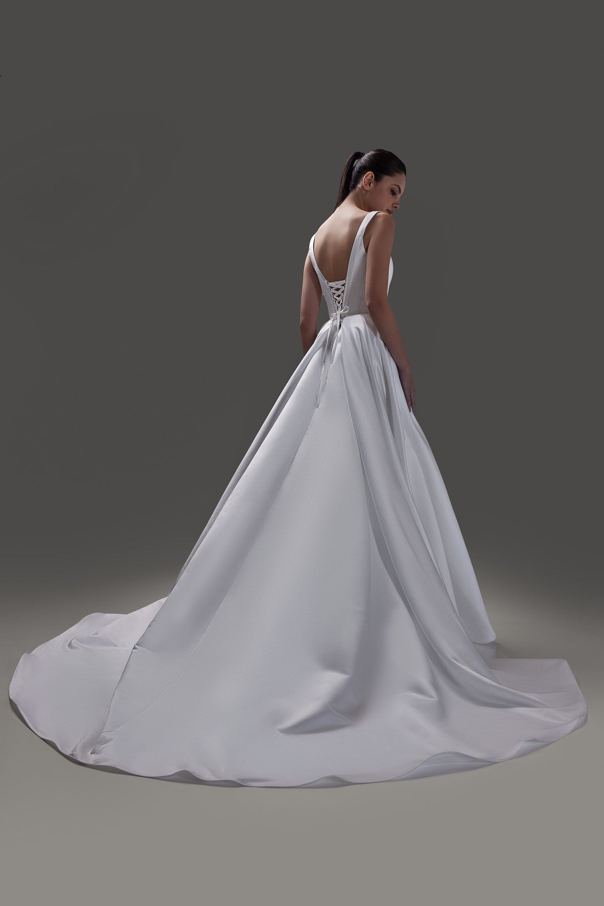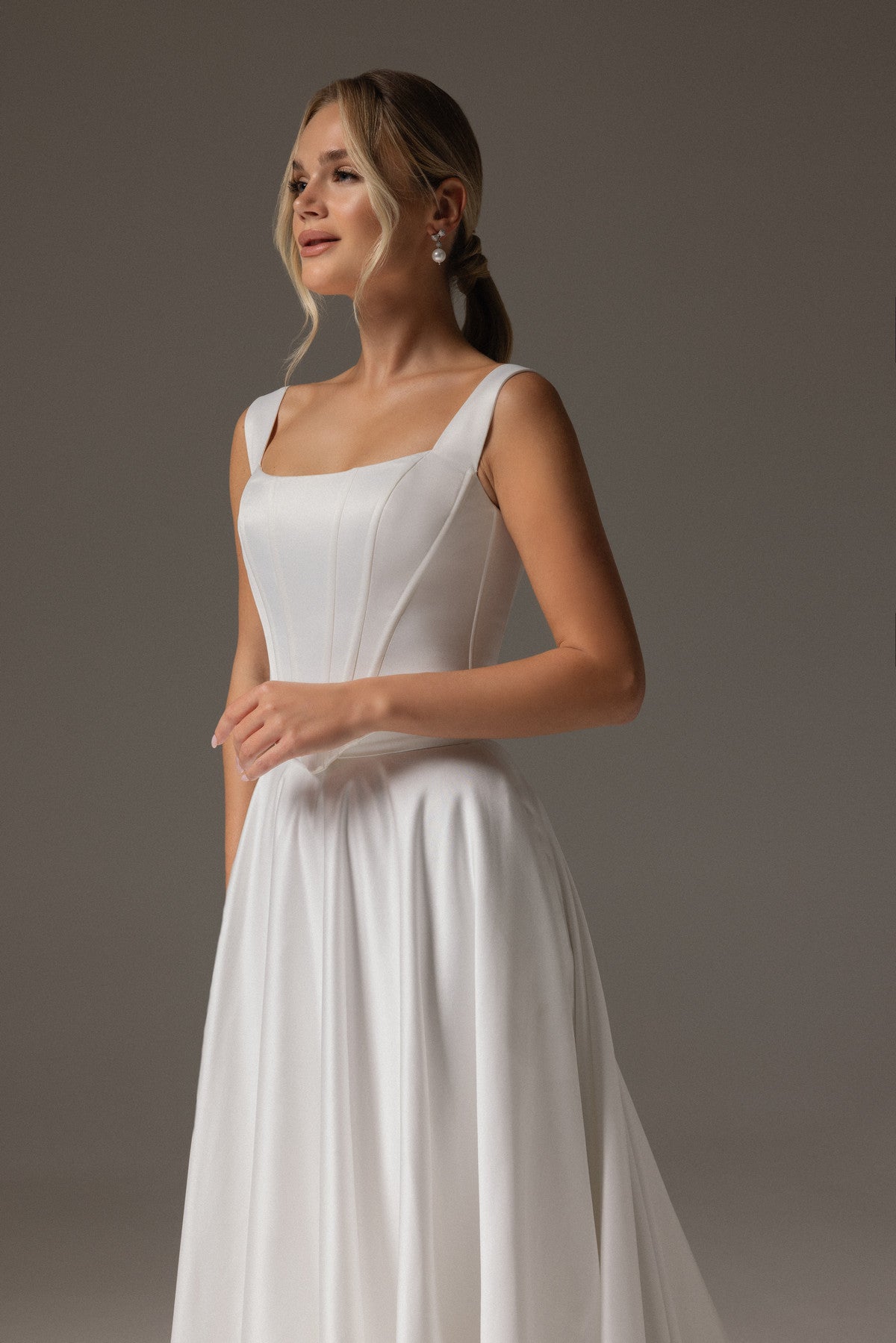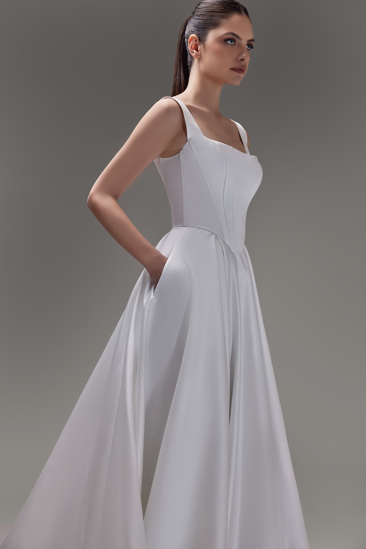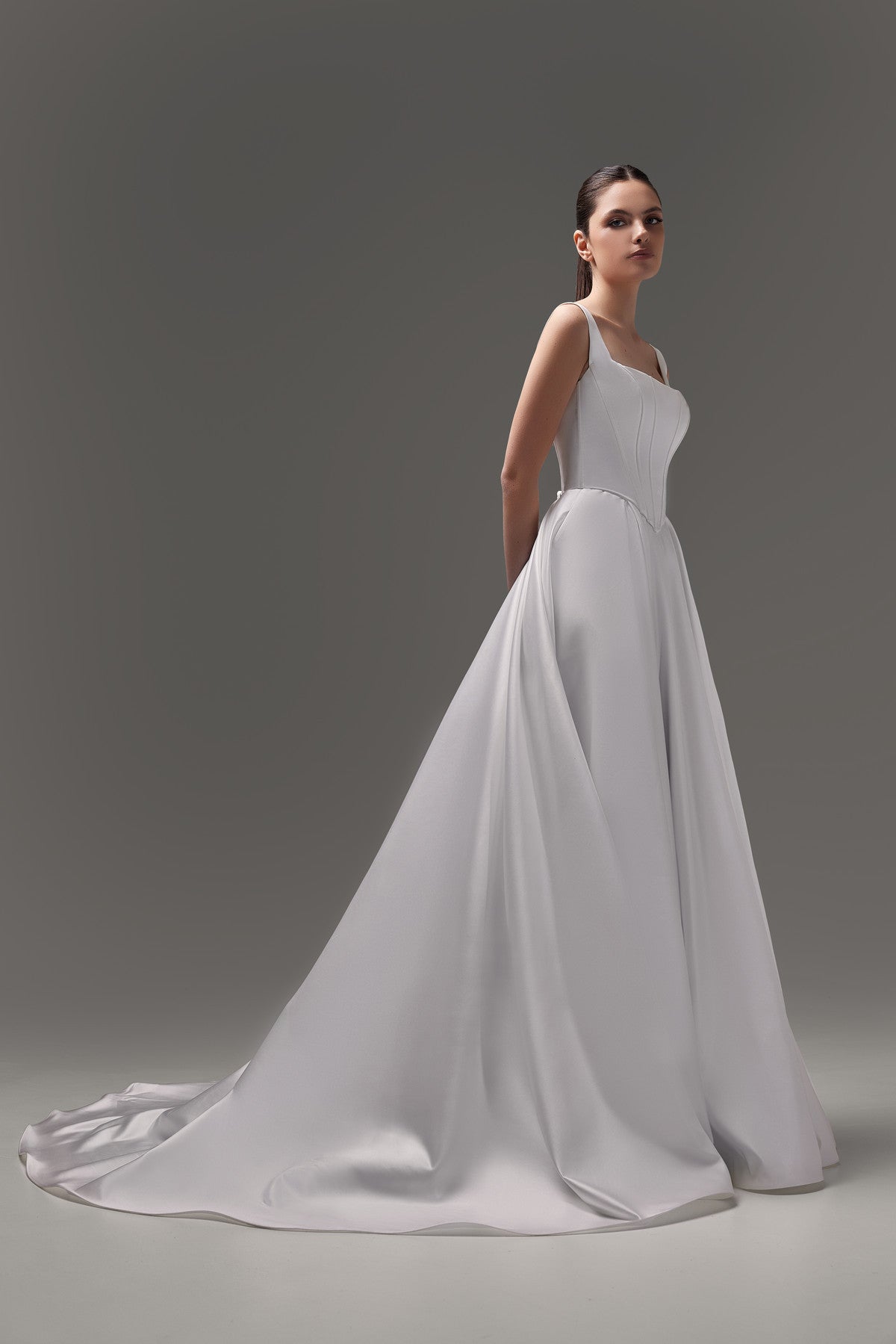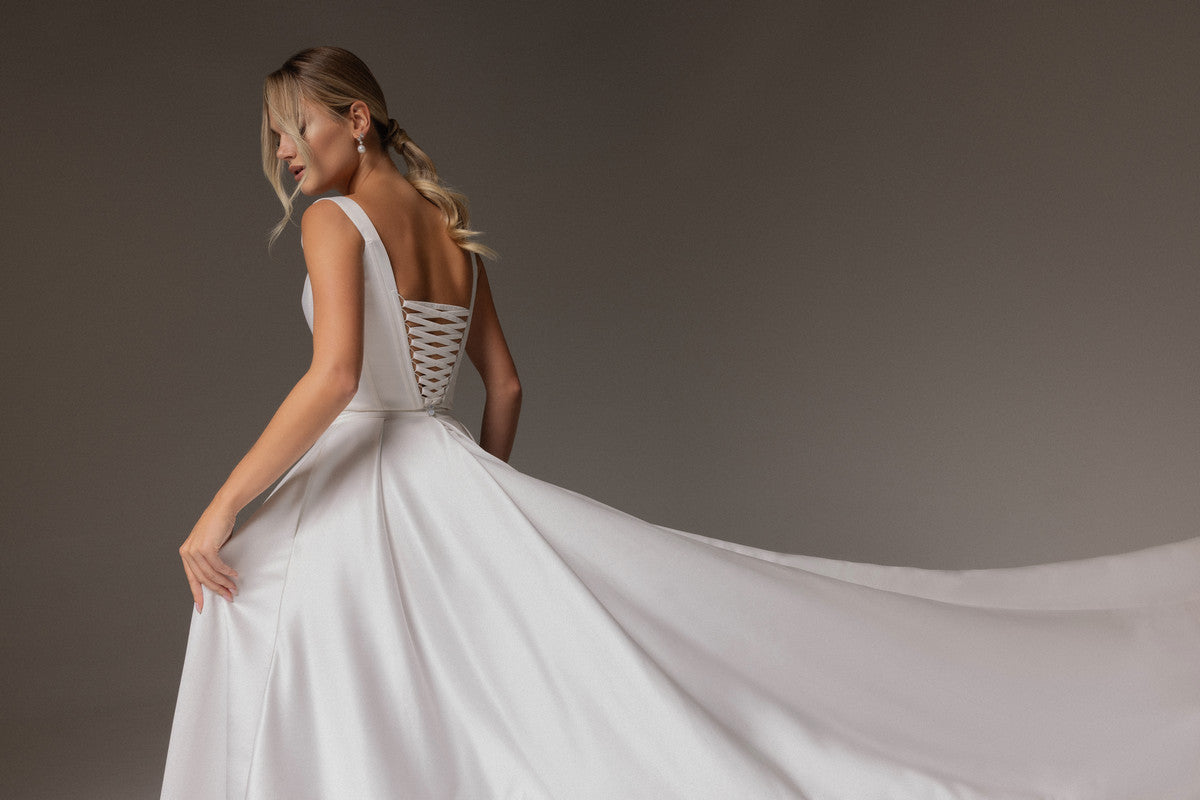 Two-piece Satin drop Waist Corset and A-line Skirt With Train Syntia