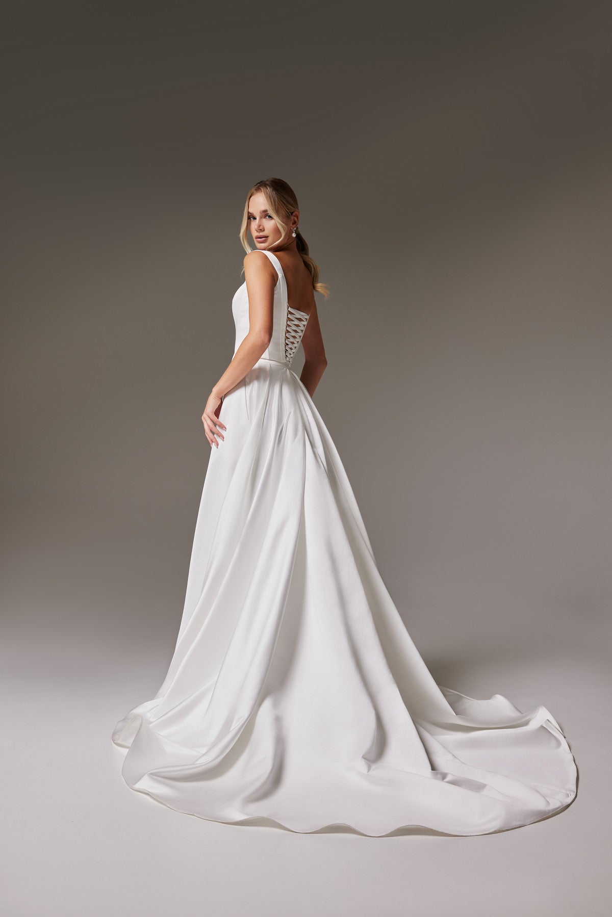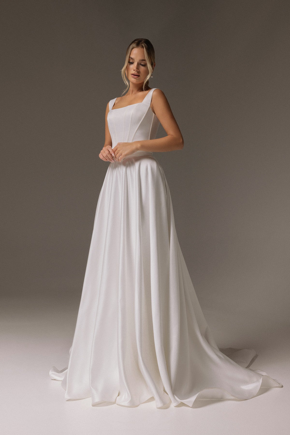 Custom-size gown is created based on customer measurements. To ensure a better fit, we recommend ordering the Custom Size option. Your dress will be individually tailor-made to fit your body shape. Our easy-to-use online Measurement Guide will help you set up your measurement profile within 10-15 minutes. Our tailors will review each measurement profile and alert you if any adjustments are needed. Please note that our custom sizing options should provide you with a good fit, especially for brides who are in between sizes. However, anticipate needing some local alterations for the perfect fit, whether you are purchasing a Standard size or a Custom size gown.