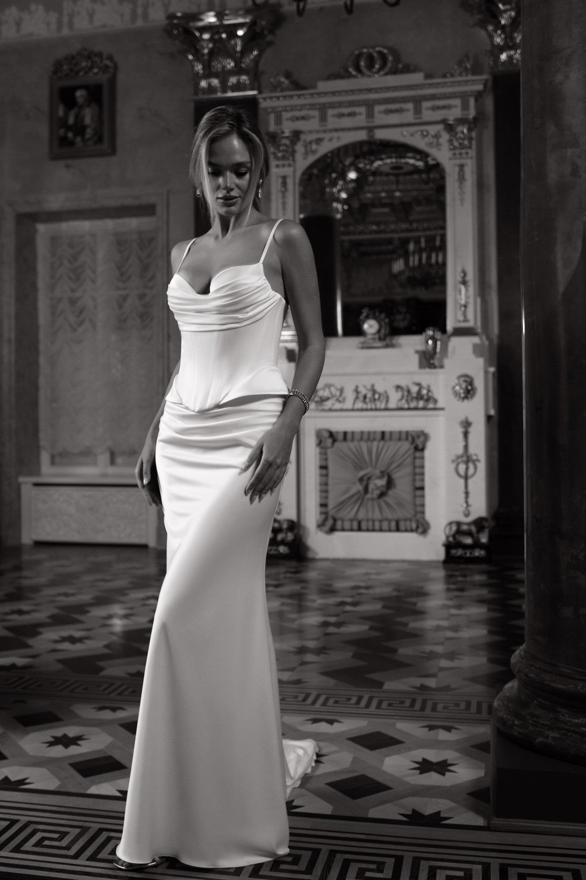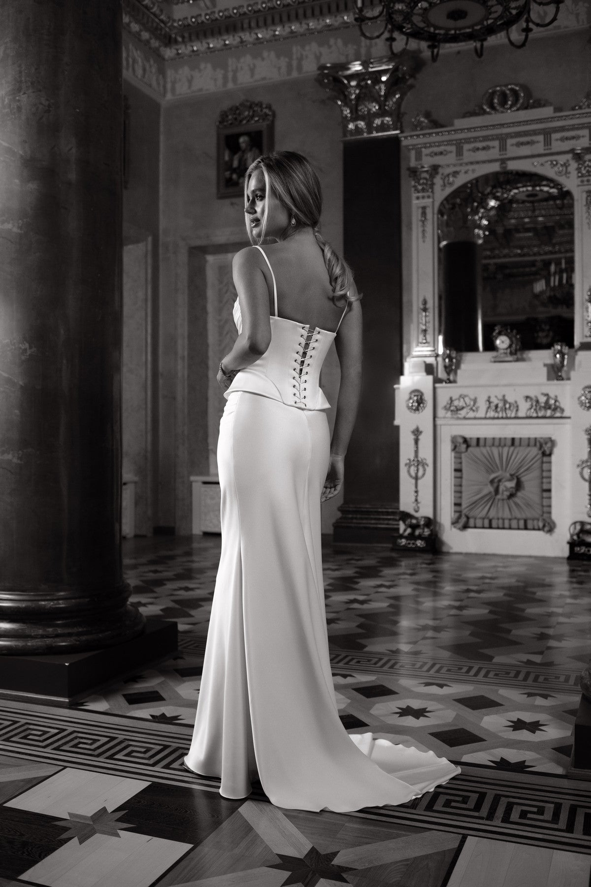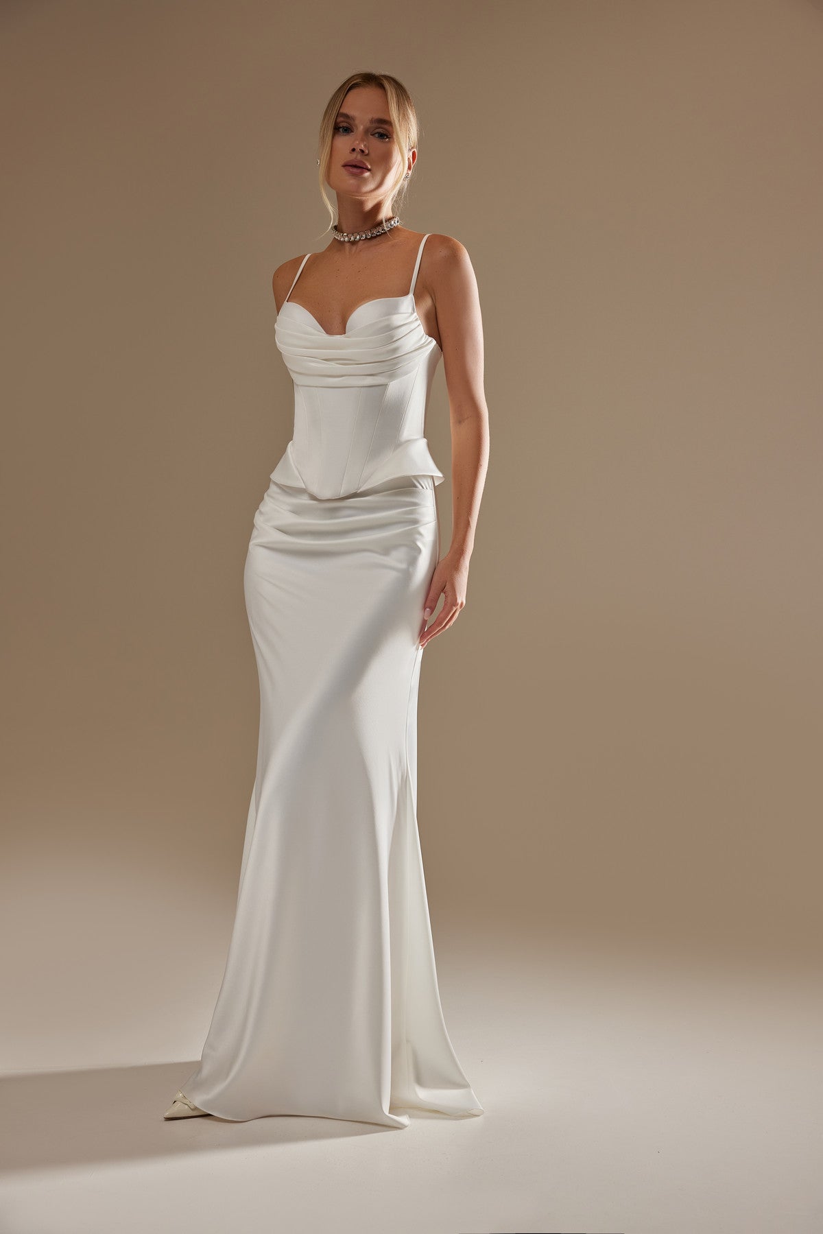 Two Piece Satin Wedding Dress Nancy With Bustier Corset And Long Skirt